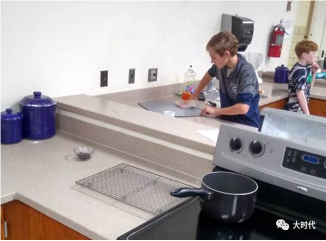 这是一堂烹饪课,这个小男孩正在洗炊具,老师强调的就是快、一定要快,赶紧把这些东西收拾好。孩子闻风而动、不拖拉。